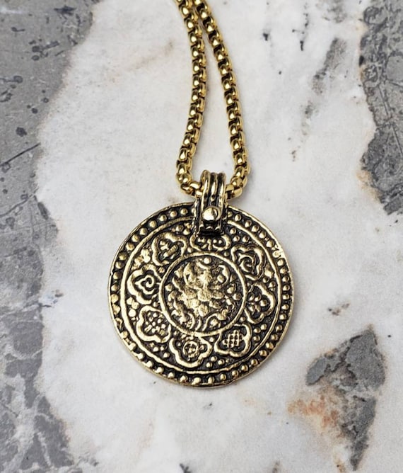 Collar 8 FOLD PATH MEDALLION para hombre/ Collar de medallón de ocho caminos noble de peltre de oro para hombre/ Collar de cadena de caja de oro para hombre - Etsy España