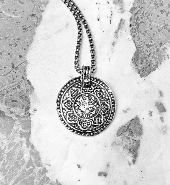 Collar 8 FOLD PATH MEDALLION para hombre/ Collar de medallón de ocho caminos noble de acero inoxidable de oro plateado para hombre/ Collar de cadena de caja para hombre - Etsy España