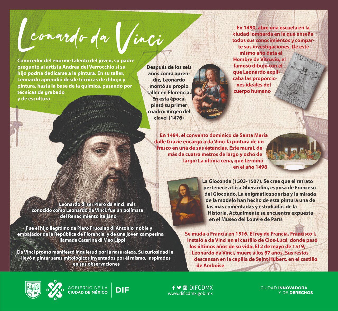 DIF Ciudad de México on X: "#UnDíaComoHoy pero de 1452 nace #LeonardoDaVinci, pintor, anatomista, botánico, escritor, escultor, filósofo, ingeniero e inventor que forma parte de la tríada de los grandes maestros del