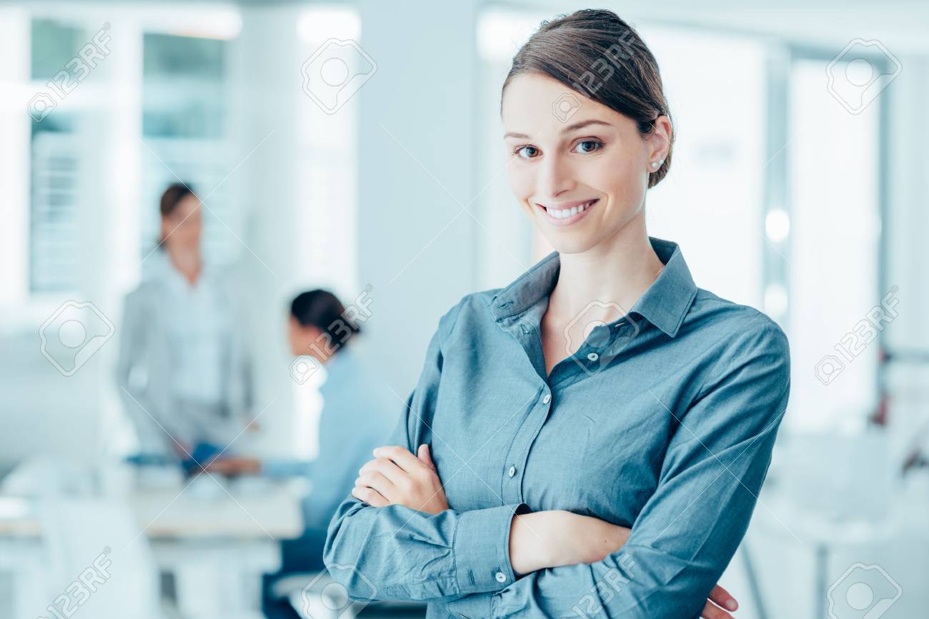 Mujer oficinista sonriente, trabajadora de oficina Foto de stock 1897156375 | Shutterstock