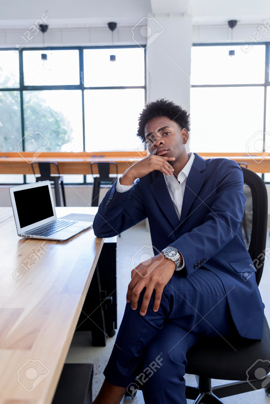 Retrato Vertical Del Oficinista Sonriente Bonito Que Se Sienta En Imagen de archivo - Imagen de moderno, feliz: 119416205