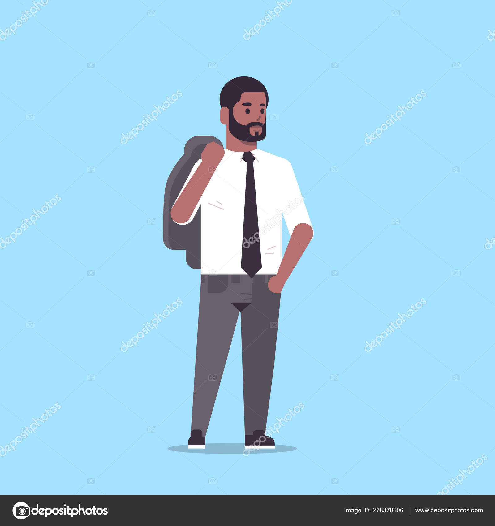 Hombre de negocios en el desgaste formal celebración de la chaqueta de pie pose sonriente personaje de dibujos animados masculino africano americano hombre de negocios oficinista posando de longitud completa plana Vector
