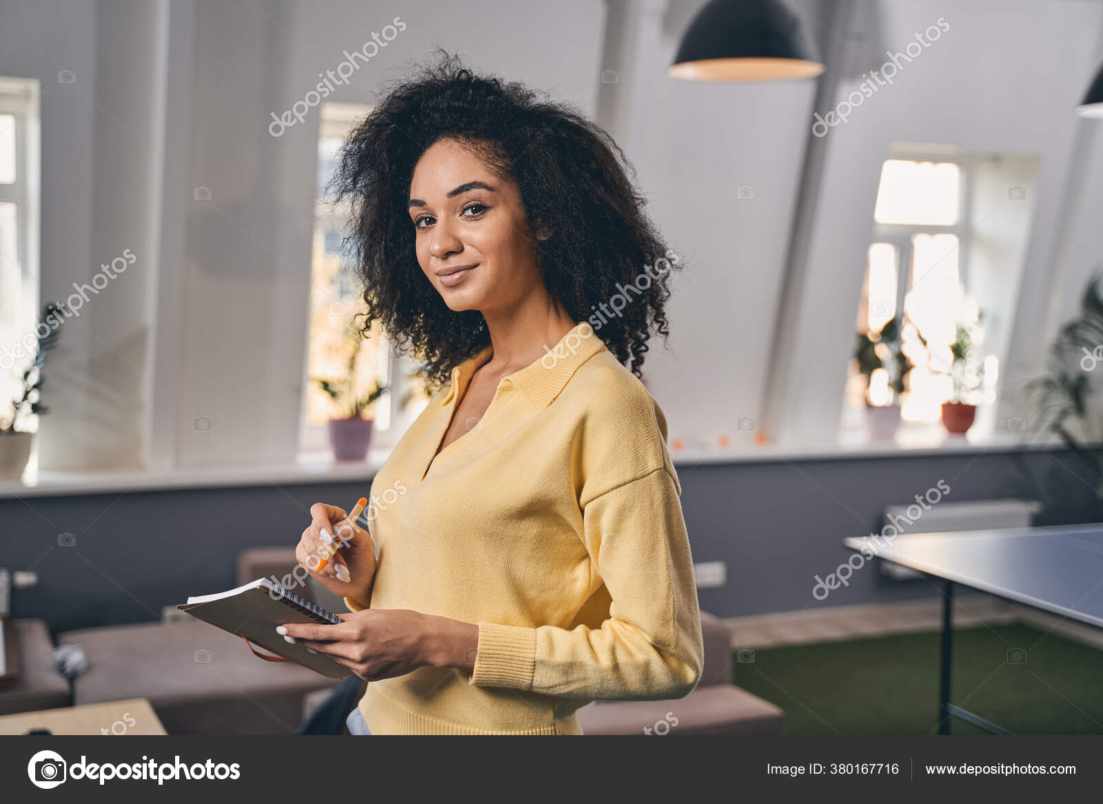 Oficinista Sonriente Con La Tabla De Dibujo Foto de archivo - Imagen de mirando, afro: 31218936