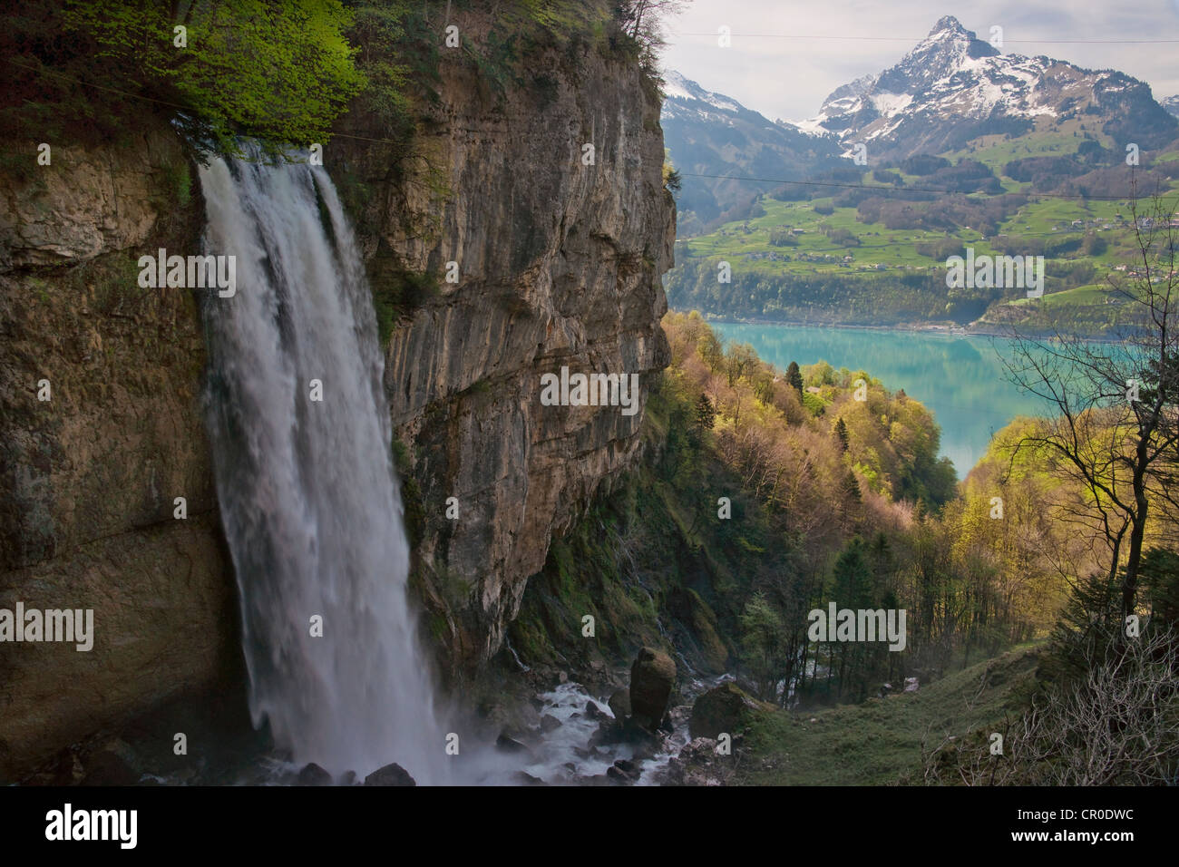 Origen del río Rin en el lago Walensee, Cantón de San Gallen, Suiza, Europa Fotografía de stock - Alamy