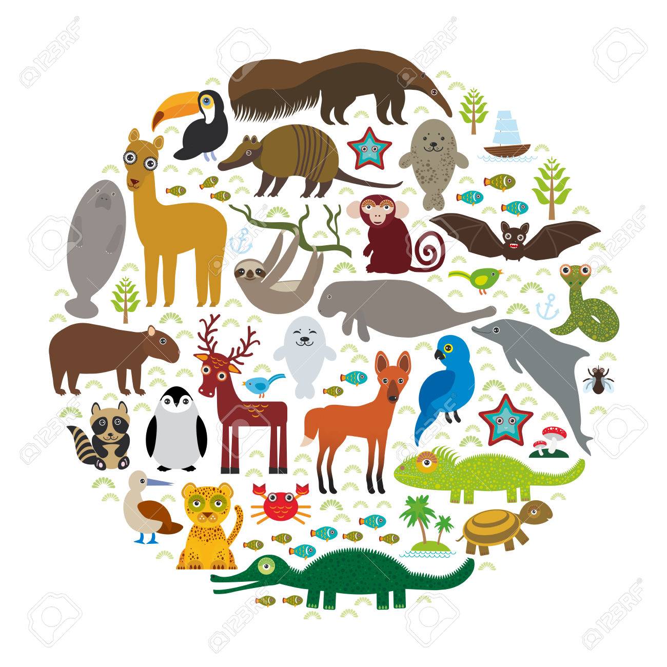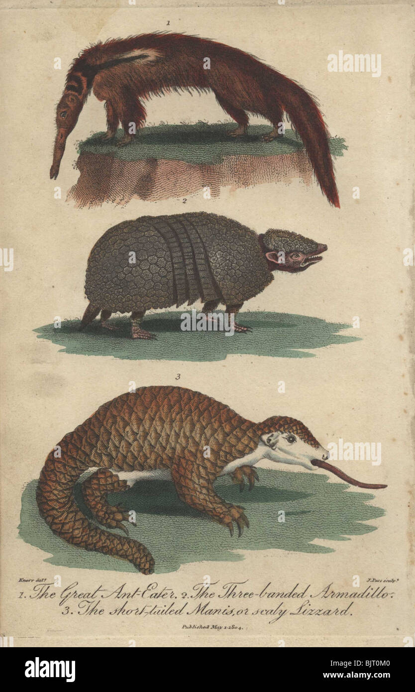 Un oso hormiguero gigante, Myrmecophaga tridactyla, tierra de pangolín c, Smutsia temminckii, armadillo de seis bandas d, Euphractus sexcinctus, pale-throated perezosos Bradypus tridactylus, e, y pato-facturados b, Ornithorhynchus anatinus platypus ...