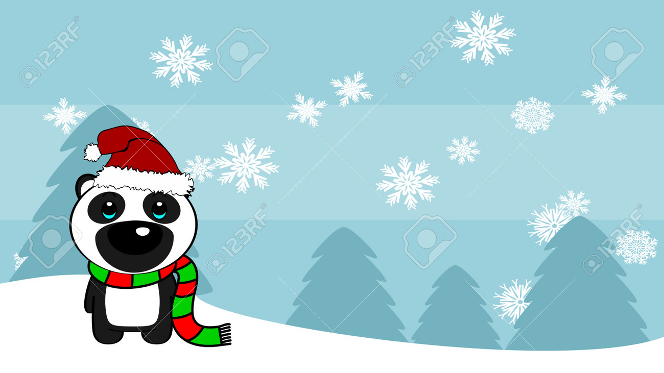 Fondo De Navidad Chibi De Pie Bebé Oso Panda Ilustración De Dibujos Animados Postal En Formato Vectorial Ilustraciones svg, vectoriales, clip art vectorizado libre de derechos. Image 193737397