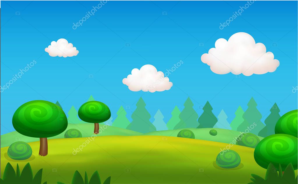 Arte De Fondo De Dibujos Animados Naturales De Paisaje Ilustración del Vector - Ilustración de hierba, recurso: 224578632