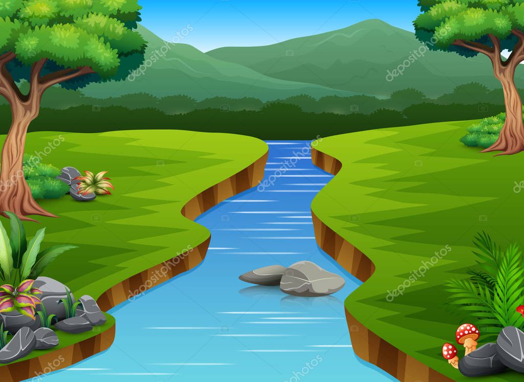 Dibujos animados del río en el medio hermoso paisaje natural | Vector Premium | Hermosos paisajes, Paisajes naturales dibujo, Paisajes de la selva