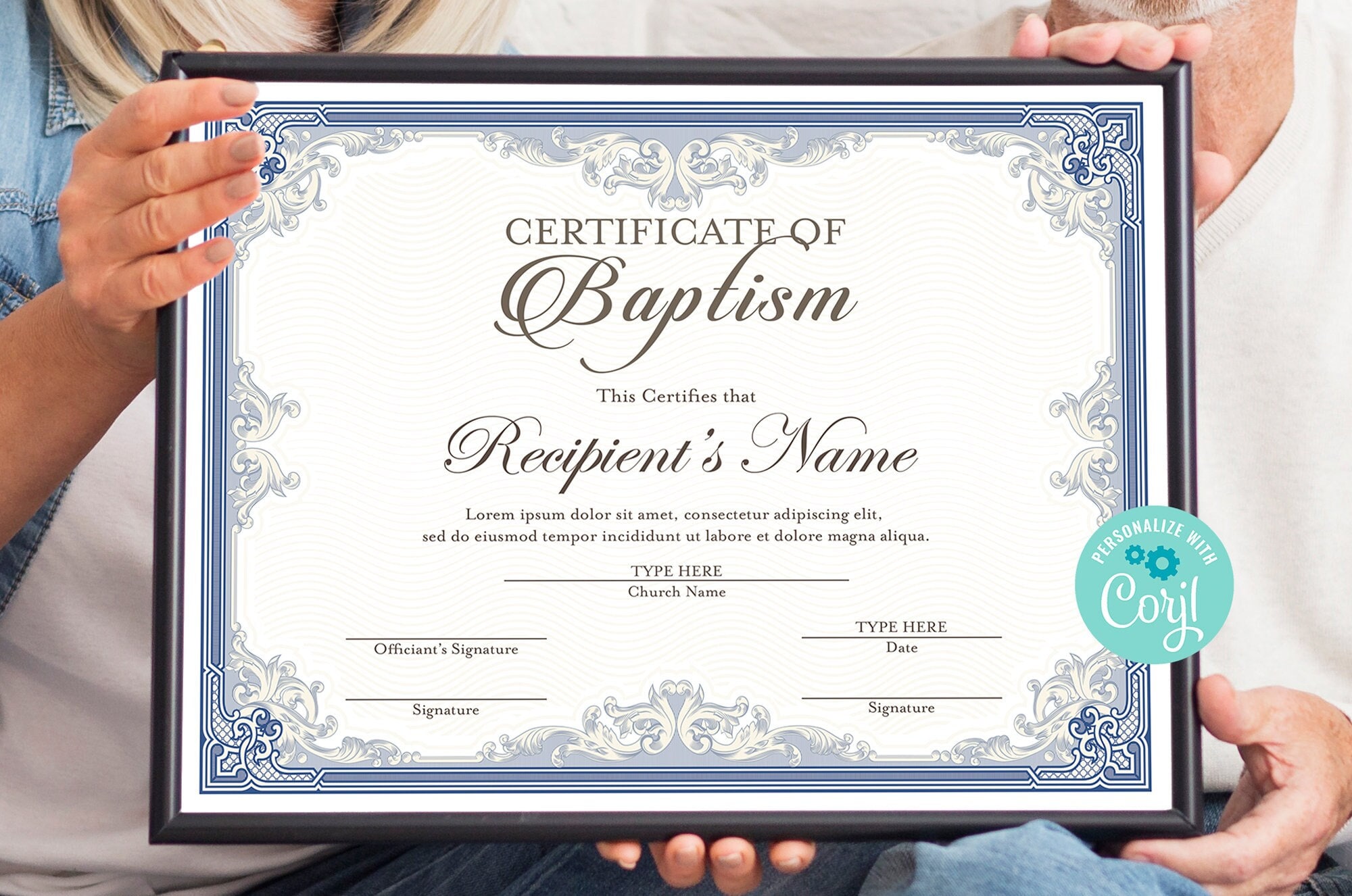 CERTIFICADO DE BAUTISMO, Plantilla Imprimible, Descarga Digital Editable, Personalizado Moderno, Certificado de Regalo, Editar e Imprimir, Acuarela Azul - Etsy España
