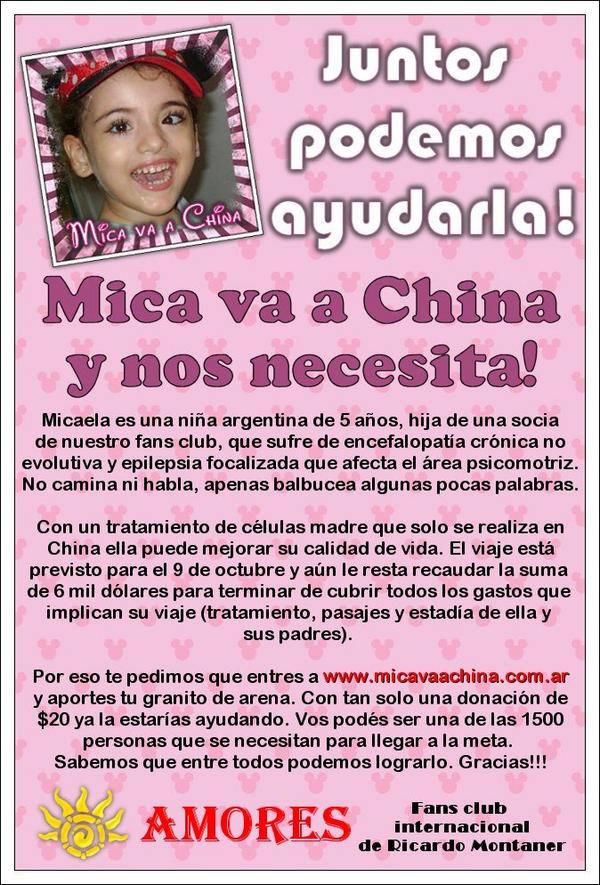 AmoresCR_RMontaner on X: "Desde ARG, desde CR o desde cualquier lugar podés ayudar a nuestra amiga #MicaNosNecesita a lograr su cirugía en China. http://t.co/VvOYQYjQ" / X