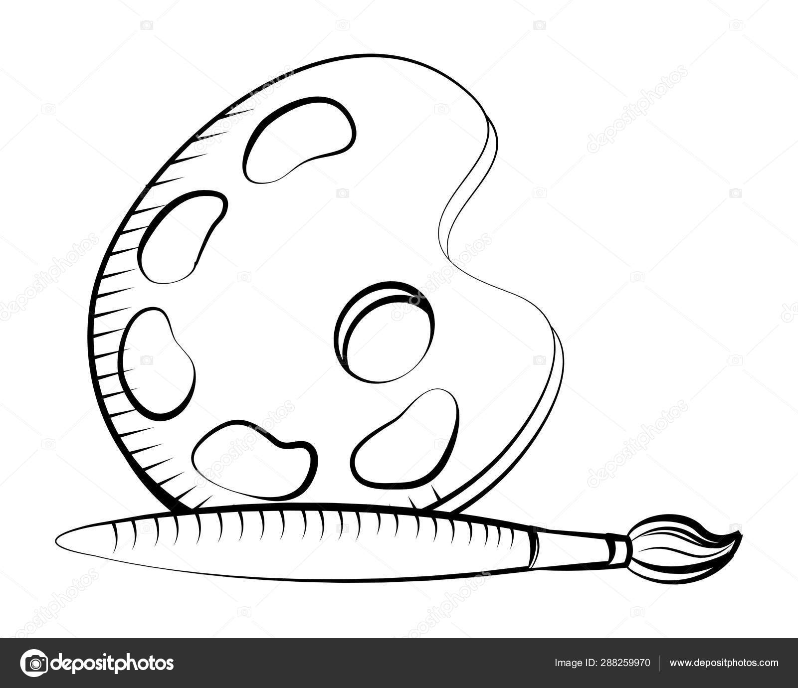 Paleta de pintura con ilustración de contorno vectorial de icono de pincel Imagen Vector de stock - Alamy