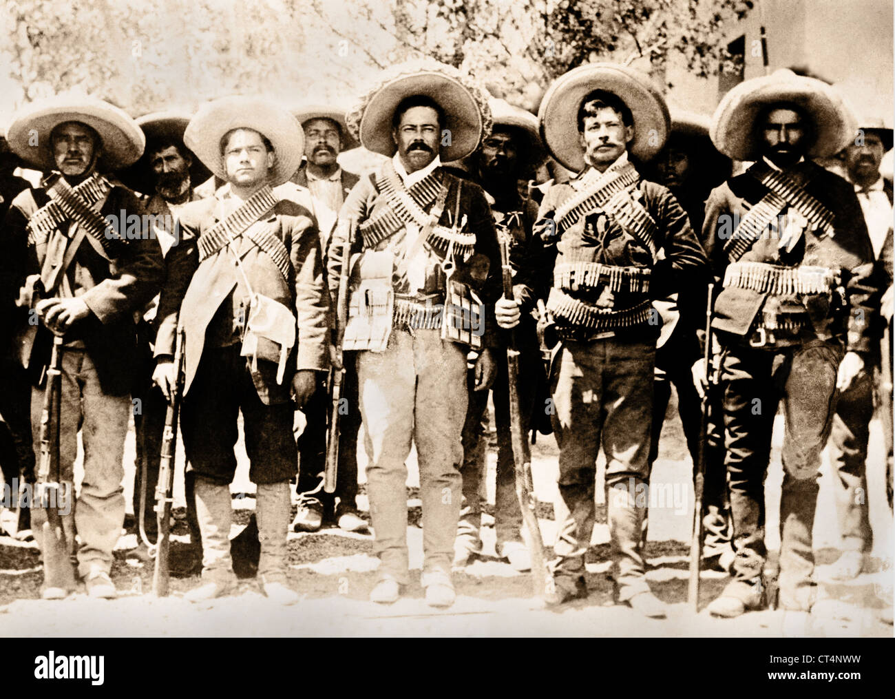 Pancho Villa's Men Urbino & Iluarte stand at attention with rifles, bandoliers and Pistols 1917, Stock Photo, Picture And Rights Managed Image. Pic. UIG-920-05-0-587-45941-L | agefotostock