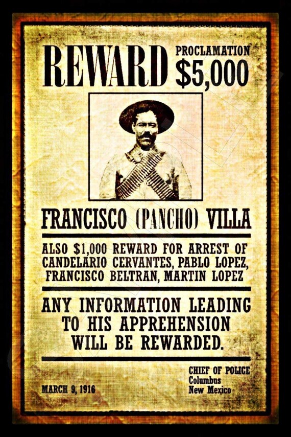 Francisco Pancho Villa Wanted Poster, Western, Mexican Outlaw, Old West, Bandit | eBay