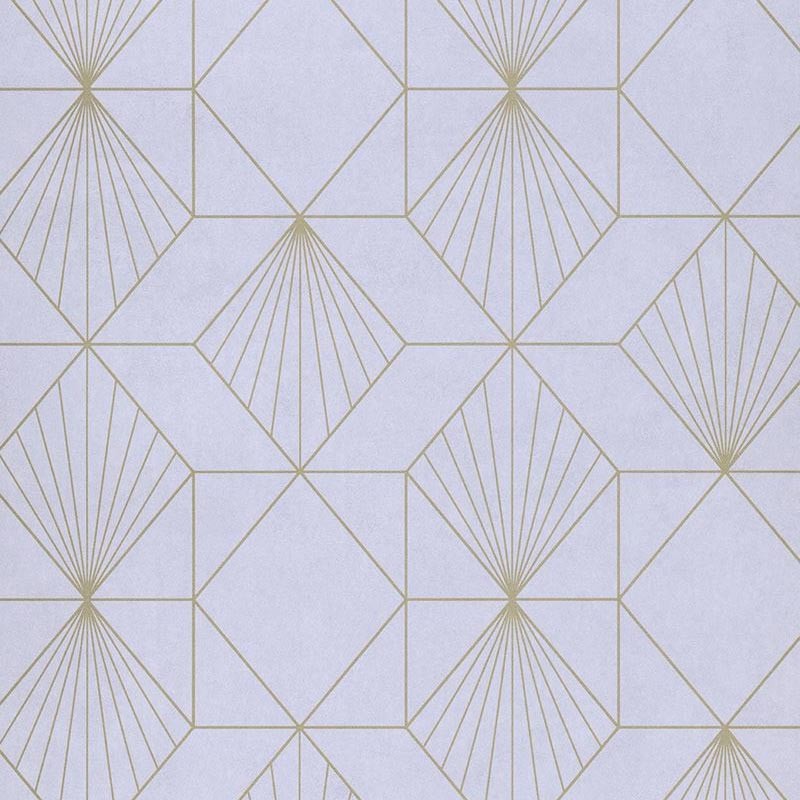 Papel Pintado geométrico art deco lila dorado metalizado