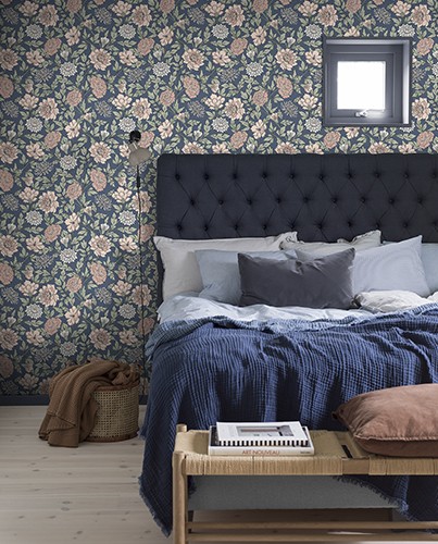 PAPEL PINTADO FLORAL AZUL NOCHE ARCHIBALD 86336406 - Papel & Deco