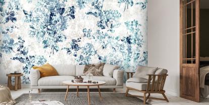 Papel pintado de flores Patrón floral azul vintage - TenVinilo