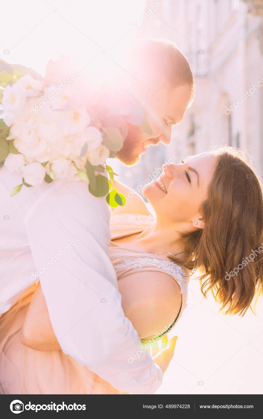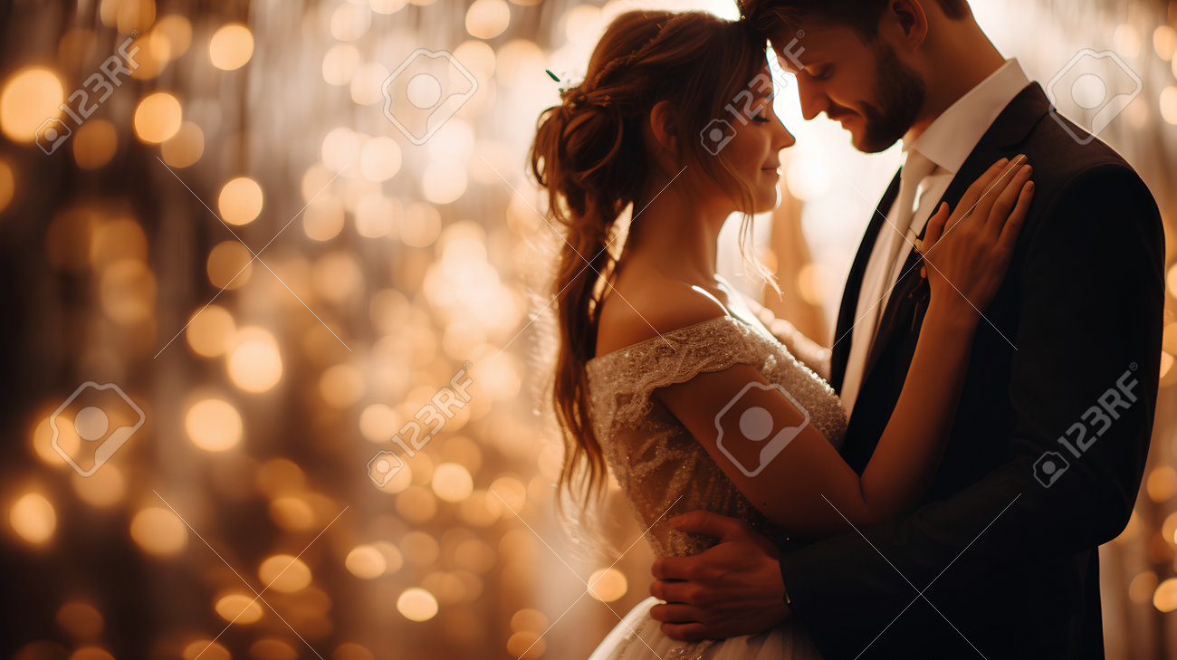 Una Pareja De Novios Enamorados, La Novia Y El Novio En La Habitación Con Luces Fotos, retratos, imágenes y fotografía de archivo libres de derecho. Image 212856162
