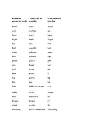Partes del cuerpo en ingles | PDF