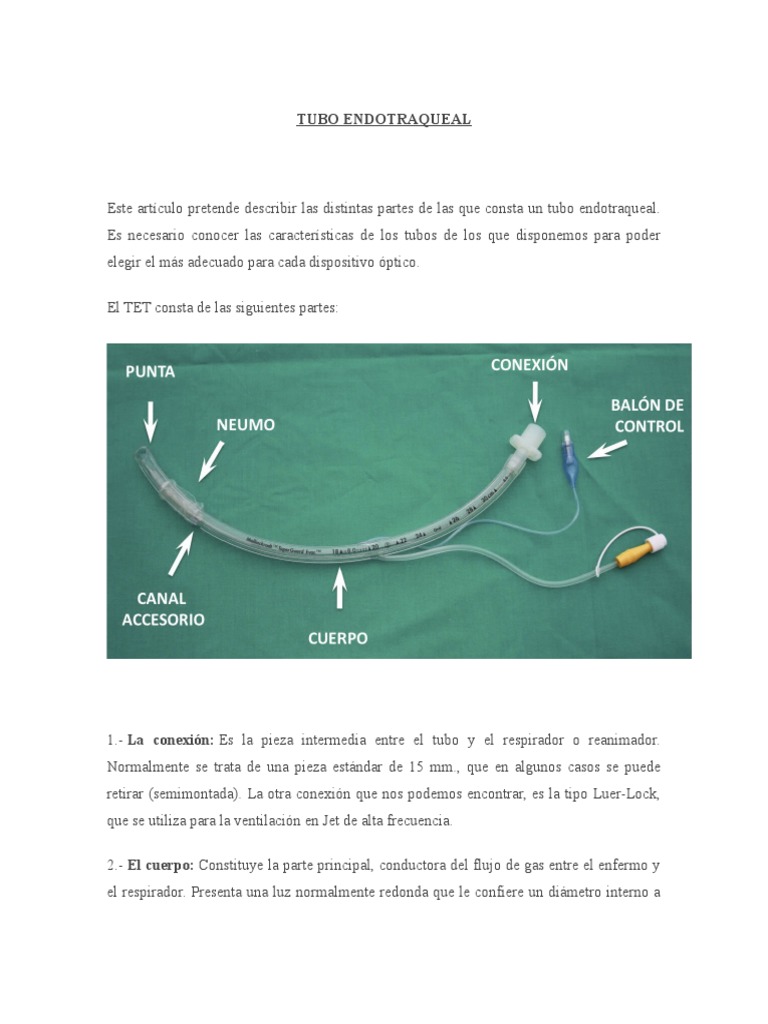 Tubo Endotraqueal | PDF | Cloruro de polivinilo | Tubería (transporte de fluidos)