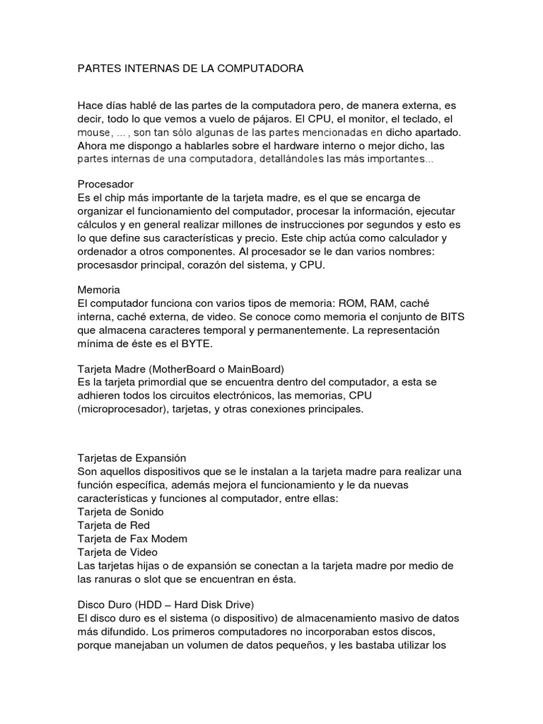Las Partes Internas de Una Computadora Son | PDF | Periférico | Microprocesador