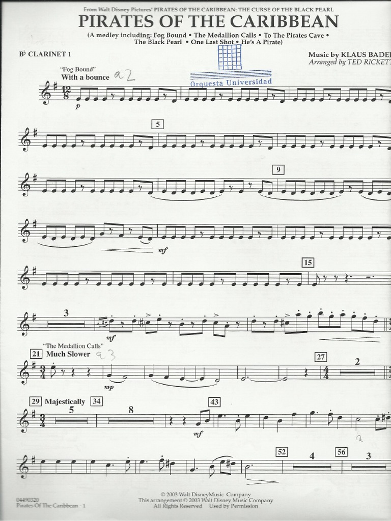 Piratas del caribe clarinete 1 Sheet music for Clarinet in b-flat (Solo) | Musescore.com