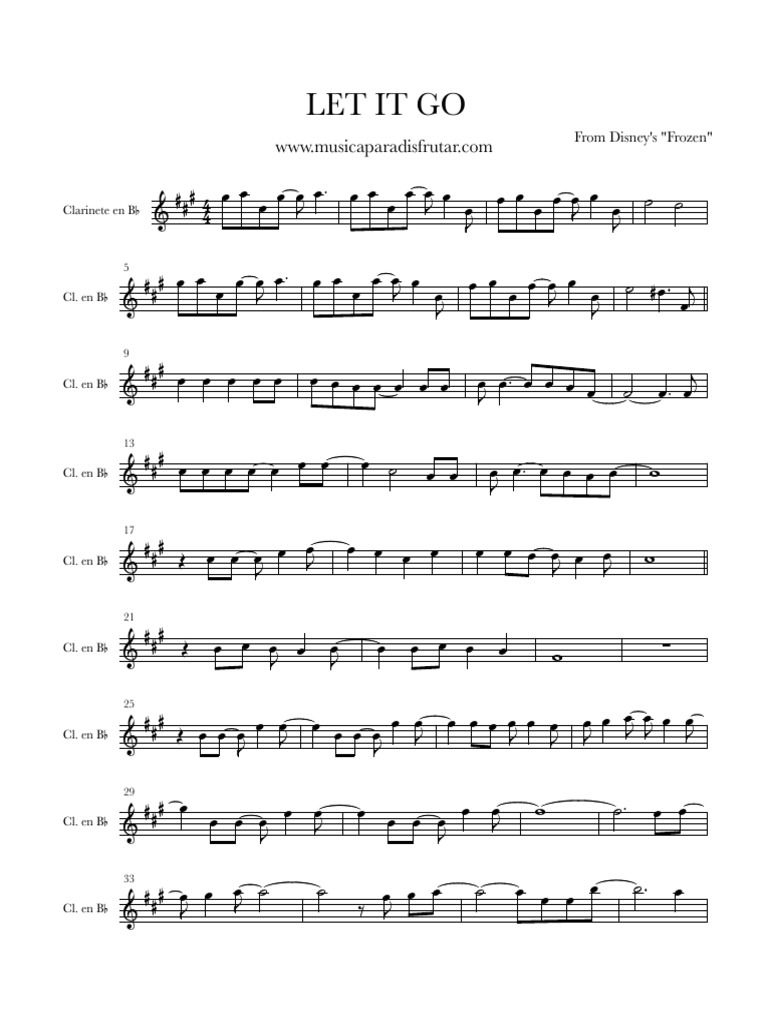 Partitura Clarinete LET IT GO Frozen PDF | PDF