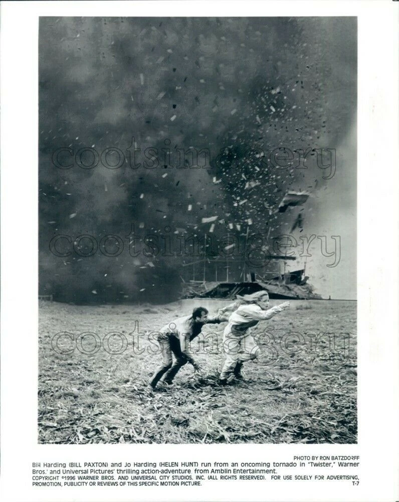 1996 Press Photo Bill Paxton & Helen Hunt Run From Debris & Tornado Twister | eBay