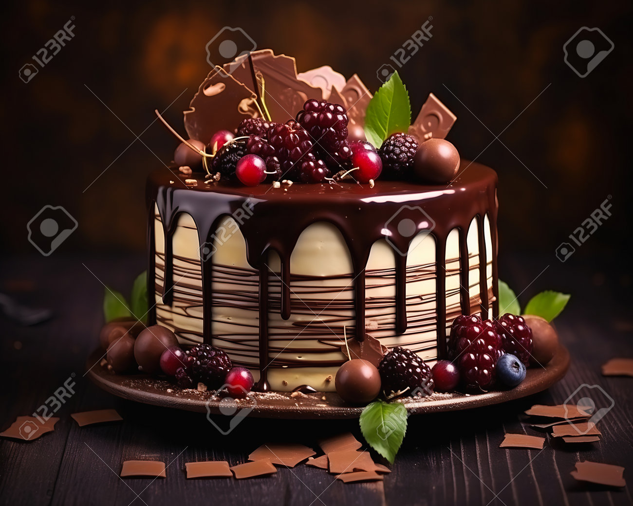 Delicioso Pastel De Chocolate. Pastel Tres Chocolates En Un Fondo Oscuro. Cumpleaños Vacaciones Dulces Catering Banner Menú Receta Imagen de archivo - Imagen de copia, abastecimiento: 277398031