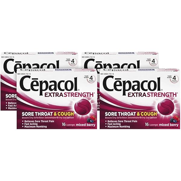 Cepacol Pastillas extra fuertes para aliviar el dolor de garganta y la tos, 16 unidades, sabor mixto de bayas, máximo adormecimiento, acción rápida alivia el dolor de garganta y calma la tos (paquete : Salud y Hogar - Amazon.com