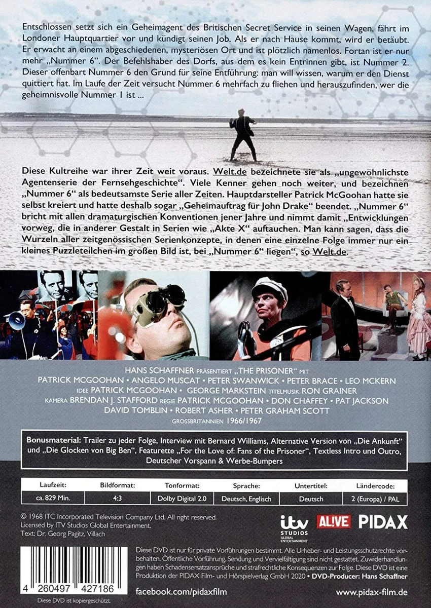 Número 6 Patrick Mcgoohan The Prisionero Completo Serie De TV 1966 - 7 DVD Caja | eBay