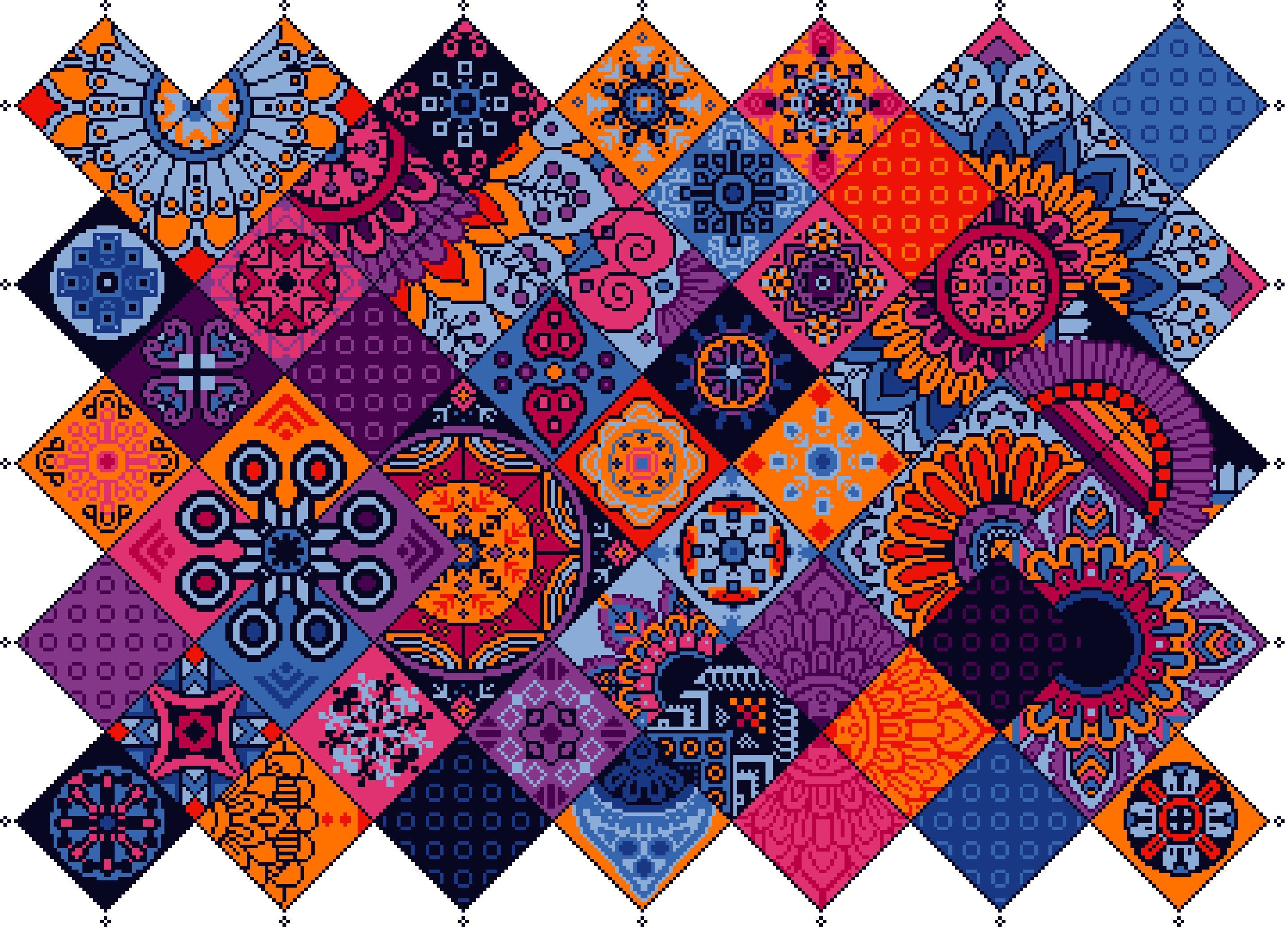 Azulejos de patchwork de punto de cruz Cuadrados geométricos otomanos/boho islámicos/árabes Arte popular étnico COLOR ROSA Gráfico contado PDF 054A - Etsy España