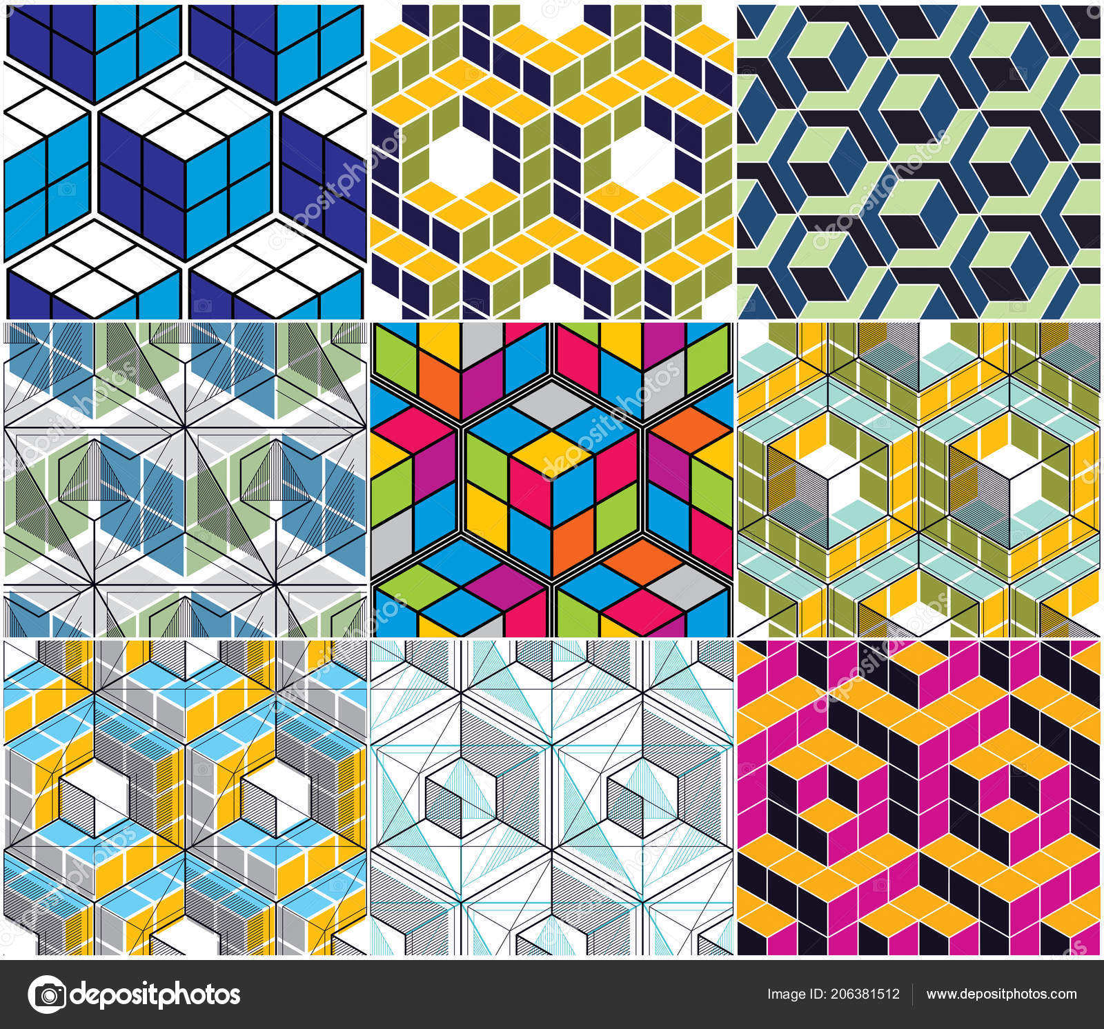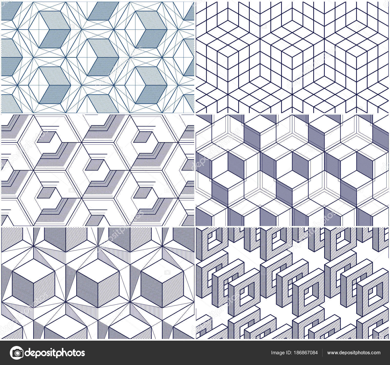 Líneas Geométricas Patrones Abstractos Sin Soldadura Conjunto De Fondos Vectoriales 3d Colección De Cubos. Diseño De Línea De Inge Ilustración del Vector - Ilustración de lineal, extracto: 203718318