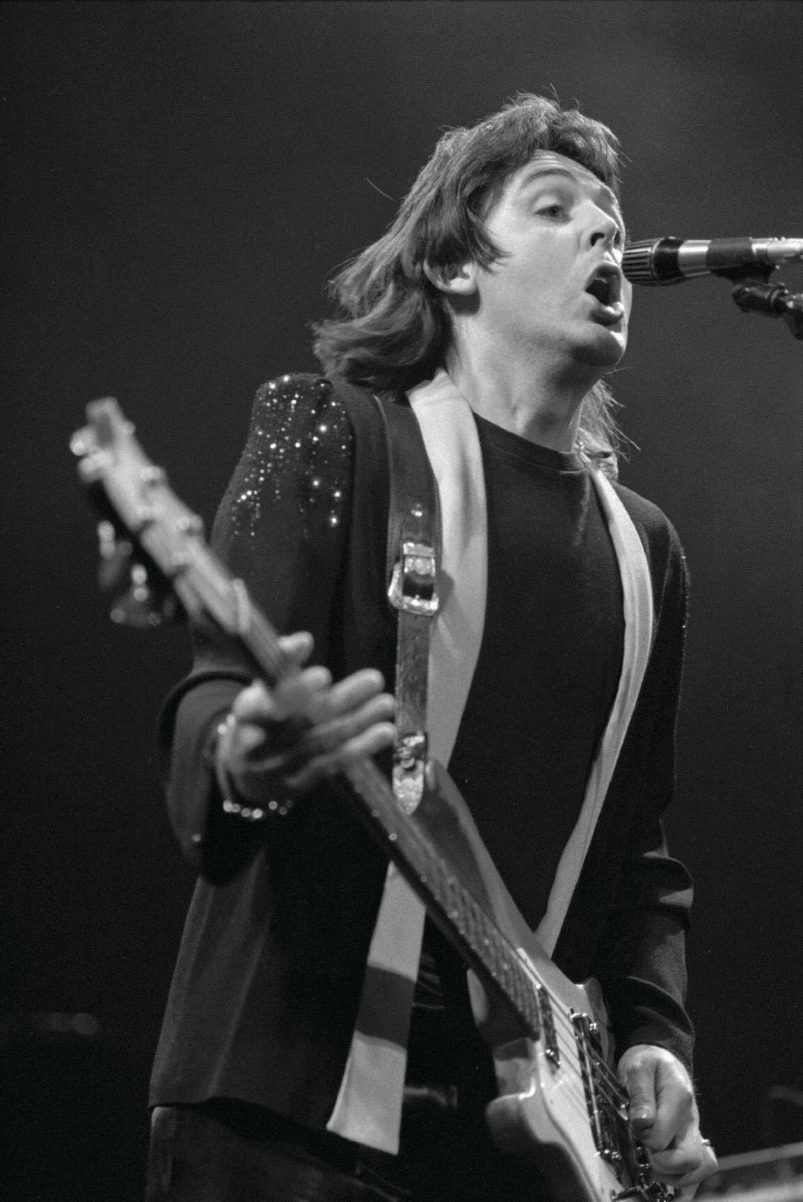 Paul McCartney of Wings performing at the Chicago Stadium in June, 1976. | Paul mccartney and wings, Paul mccartney, Mccartney