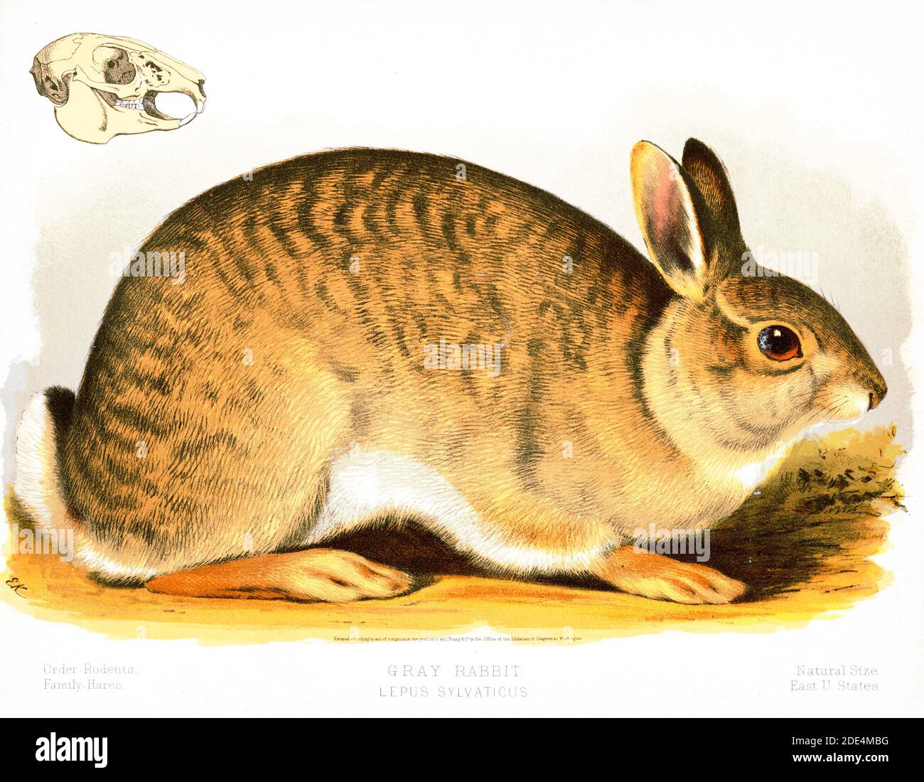 Imprimir muestra una vista de perfil adecuado de un conejo 'Gris', de longitud completa, de pie; también muestra un cráneo Fotografía de stock - Alamy
