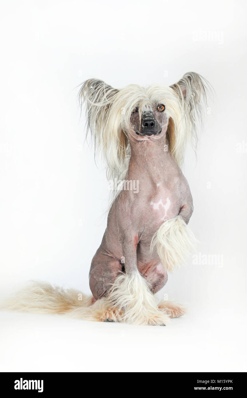Perro de raza crestado chino sin pelo,perro macho,sentado,Foto de estudio Fotografía de stock - Alamy