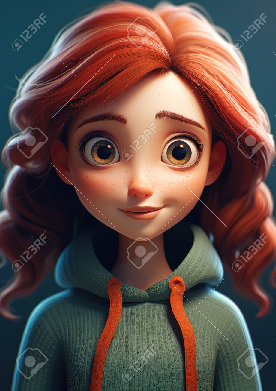 Chica De Dibujos Animados Pelo Rojo Suéter Verde Personajes Vida ...