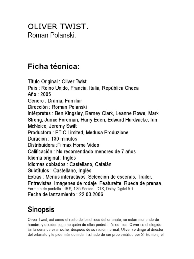 DOC) Resumen de Oliver twist | CLAUDIA MARIA NUÑEZ RAMBAUTH - Academia.edu