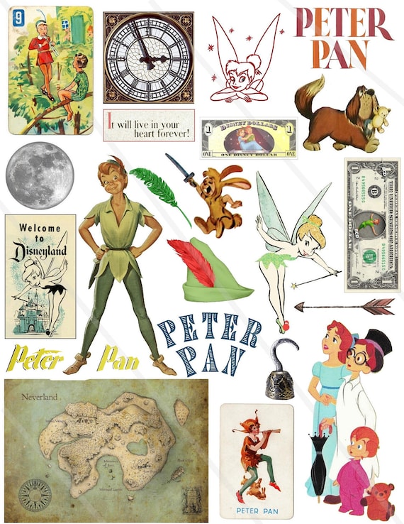 Peter Pan Clipart Neverland Clip Art Digital Collage Sheet Peter Pan Wendy Neverland Illustration PNG File JPEG Files Peter Pan Ephemera - Etsy