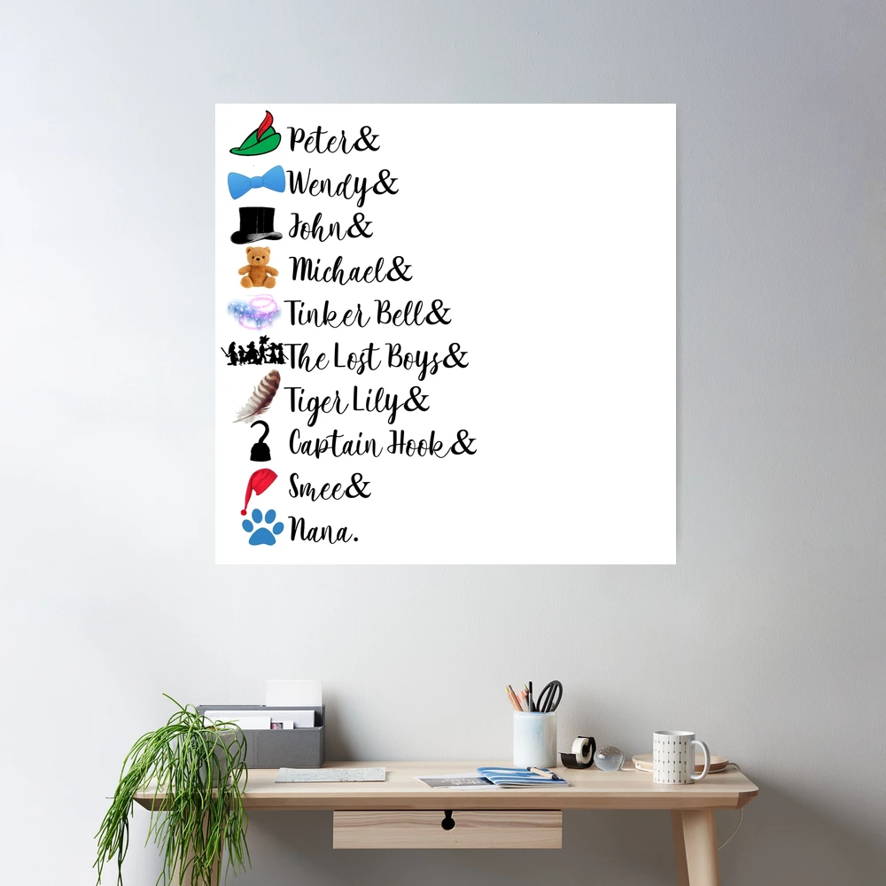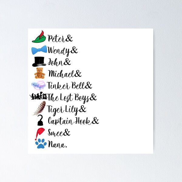Peter Pan Names" Poster for Sale by GiantSquid1 | Redbubble