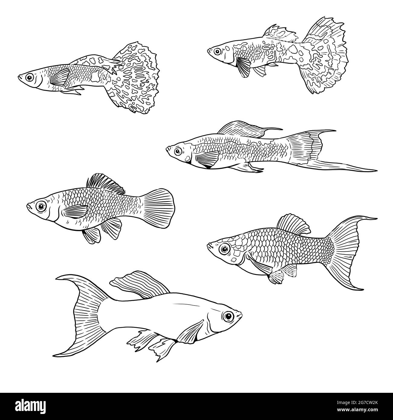 Dibujos animados peces lindos. Dibujo a mano contorno colorear imágenes. Elementos aislados. Adecuado para colorear e imprimir. Adorable personaje para la tarjeta Imagen Vector de stock - Alamy