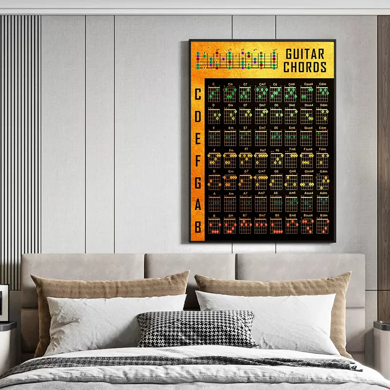 Amazon.com: Cuadro de acordes de piano, arte de pared, póster de conocimiento vintage, para sala de estar, cuadros decorativos para pared de baño, lienzo, pintura al óleo con impresión giclée para cocina,