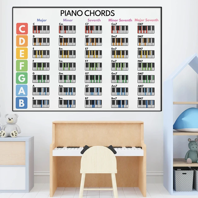 Tablature-pegatina de práctica de acorde de Piano para principiantes, diagrama de digitación de Piano grande, póster de tabla de acordes de Piano para estudiantes, 88 teclas - AliExpress