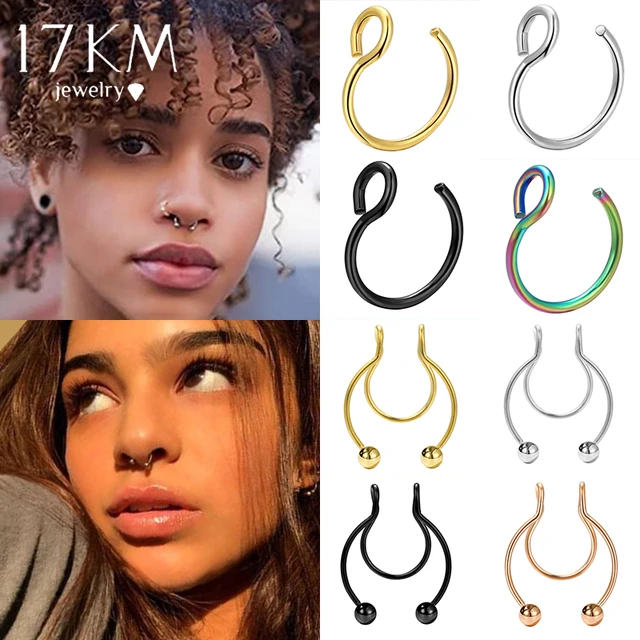 17km-anillo De Cristal Para Mujer, Piercing De Aro Falso Magnético Para La Nariz, Joyería Corporal A La Moda, 5 Colores - Bisutería Para El Cuerpo - AliExpress