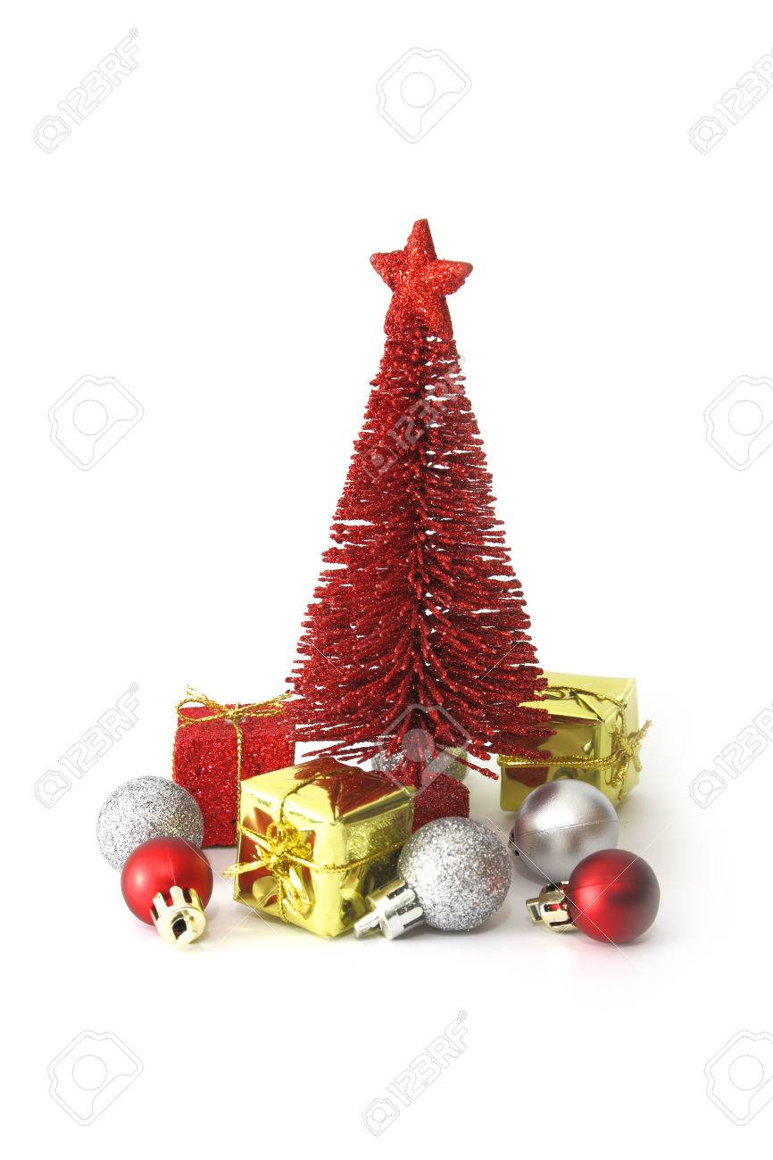 Pino Rojo Y Adornos De Navidad Decoración Sobre Fondo Blanco Fotos, retratos, imágenes y fotografía de archivo libres de derecho. Image 24222127