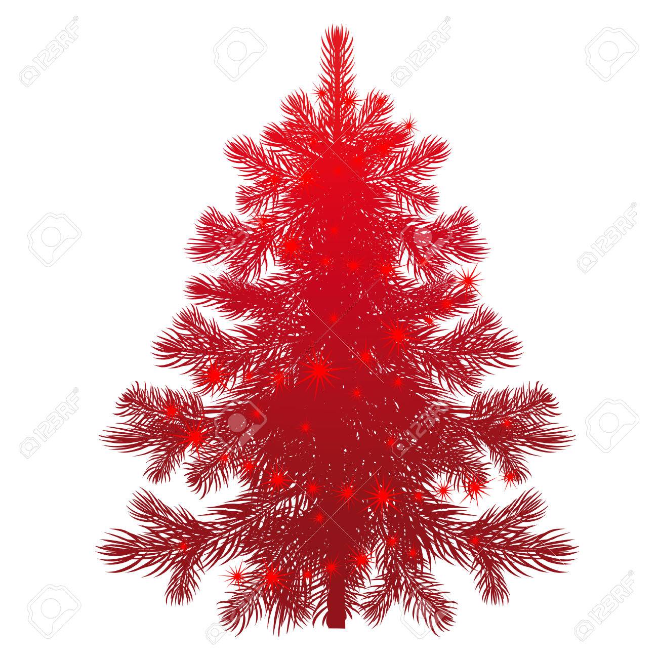 Árboles De Navidad Insólito. Pino Rojo Y Guirnaldas Brillantes. Planta Aislada Sobre Un Fondo Blanco. Arte De La Ilustración. Plantilla Para Los Regalos De Diseño Día De Fiesta, Tarjetas De Felicitación, Letrero,