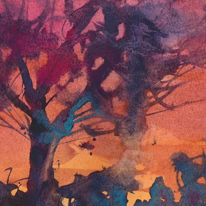 Descarga Pintura abstracta con círculo rojo y azul y árboles PNG En Línea - Creative Fabrica