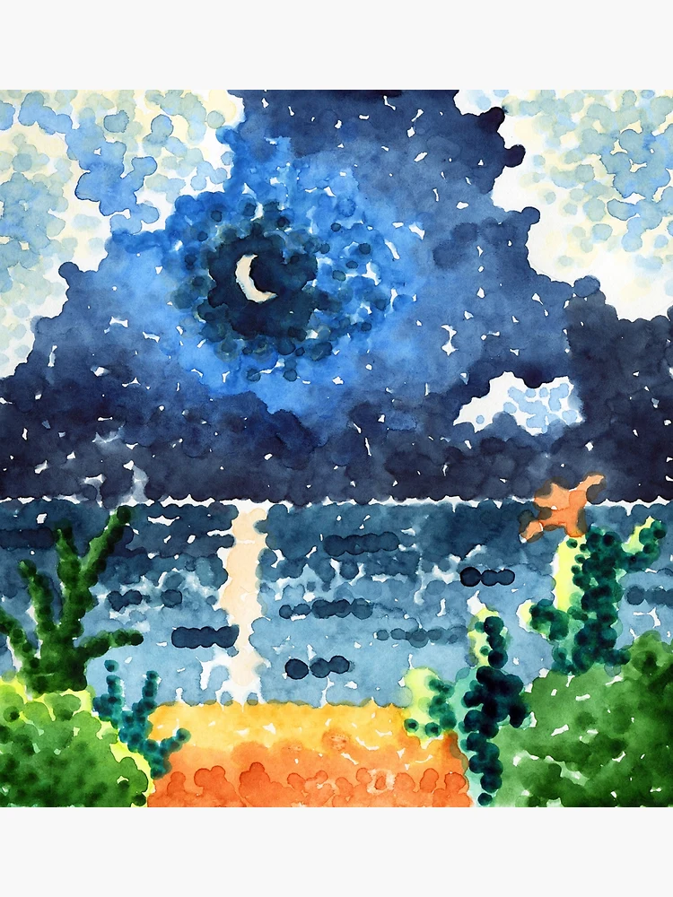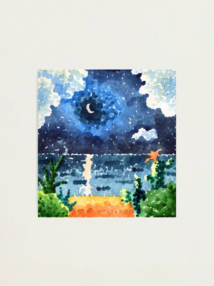 Lámina fotográfica for Sale con la obra «Paisaje nocturno al estilo del puntillismo, el mar y la luna.» de fiolika | Redbubble