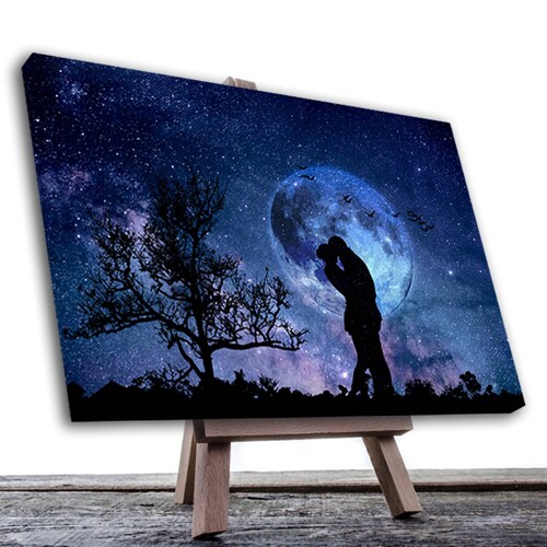 Cuadro Decorativo Romántico Pareja Bajo La Luna 90 X 60