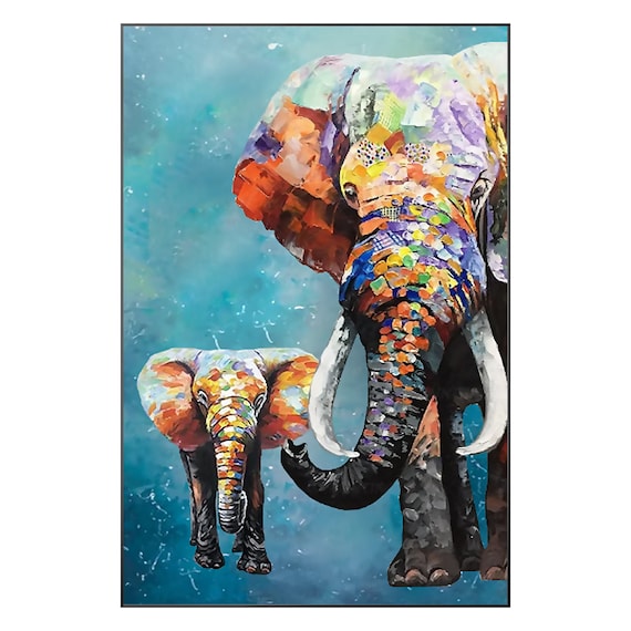 Amazon.com: Pinturas al óleo de elefante colorido de gran tamaño sobre lienzo, arte de pared, pósteres e impresiones para parejas de elefantes, cuadros para decoración de sala de estar, 19.7 x 39.4