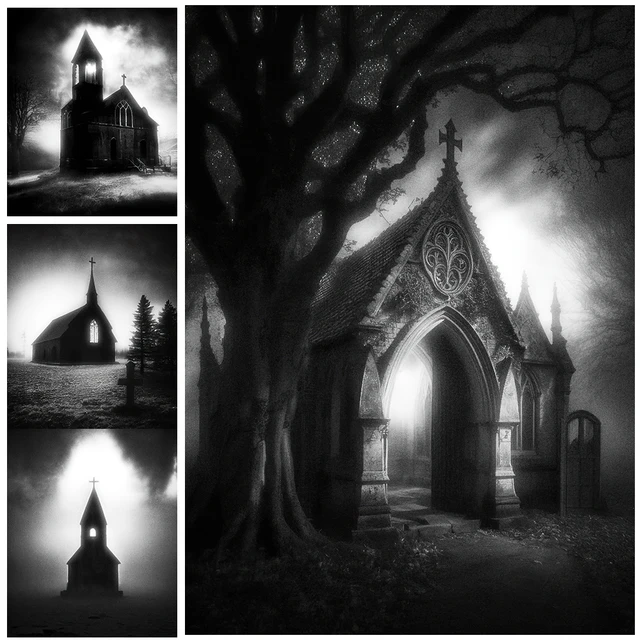 Pintura sobre lienzo de Arte de pared Vintage, Iglesia solitaria ...